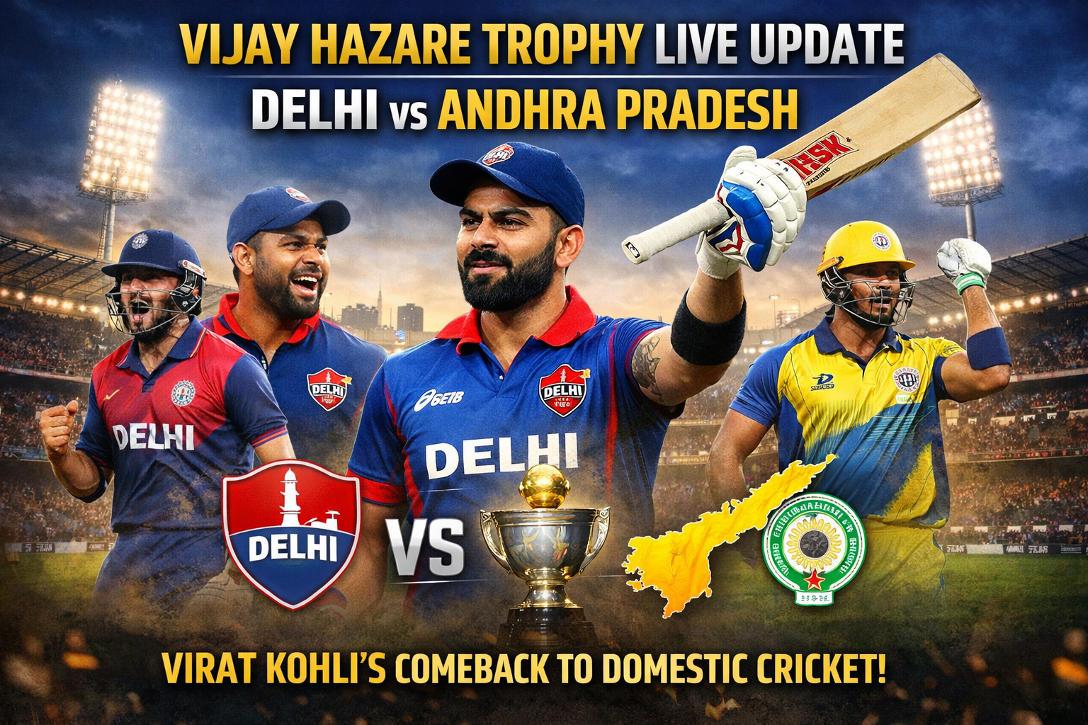 Vijay Hazare Trophy Live Update, Virat Kohli’s return to domestic cricket isn’t just about one match; it’s about reconnecting with his roots. It’s a full-circle moment — the star who once began his journey in domestic cricket is back to inspire the next generation.